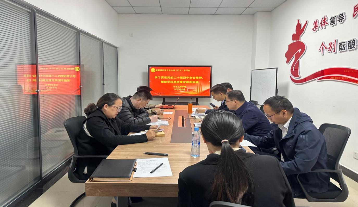 为深入学习贯彻党的二十届四中全会精神,切实把思想和行动统一到党中央决策部署上来,10月31日,化学工程学院在先骕楼4-3357 会议室召开党委理论学习中心组(扩大)学习会。会议以 “学习贯彻党的二十届四中全会精神,赋能学院高质量发展新实践” 为主题开展专题学习,学院党委班子成员、科级干部及各党支部书记参加会议,院党委书记邓建刚主持会议并讲话。