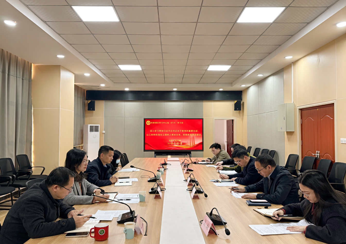 1127日上午,化学工程学院在先骕楼4-1311会议室召开党委理论学习中心组(扩大)学习会,围绕“深入学习贯彻习近平总书记关于教育的重要论述,以工科特色落实立德树人根本任务,助推教育强国建设”开展专题学习。学院党政班子成员、各党支部书记、科级干部参加会议,经济与管理学院党委书记许婕应邀莅会指导。会议由学院党委书记邓建刚主持。
