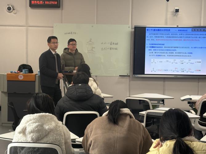 邓建刚一行先后走进学院本科生和研究生课堂。在《有机化学》课堂,曾兴平老师授课思路清晰、逻辑严谨,将理论与学术前沿结合,注重基础讲解与思维引导,课堂氛围浓厚。